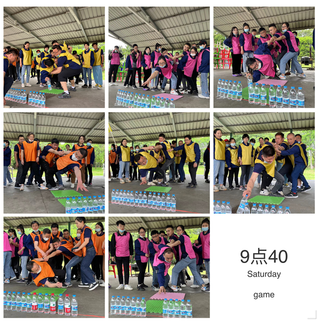 這個(gè)游戲的規(guī)則是每個(gè)隊(duì)一個(gè)圓圈,每個(gè)隊(duì)員都要穿過(guò)這個(gè)圓圈,看那個(gè)隊(duì)用時(shí)最短,每個(gè)隊(duì)都奮力爭(zhēng)先。眾人齊心協(xié)力,心向一處靠,力往一處使。團(tuán)隊(duì)協(xié)作精神體現(xiàn)的淋漓盡致。
