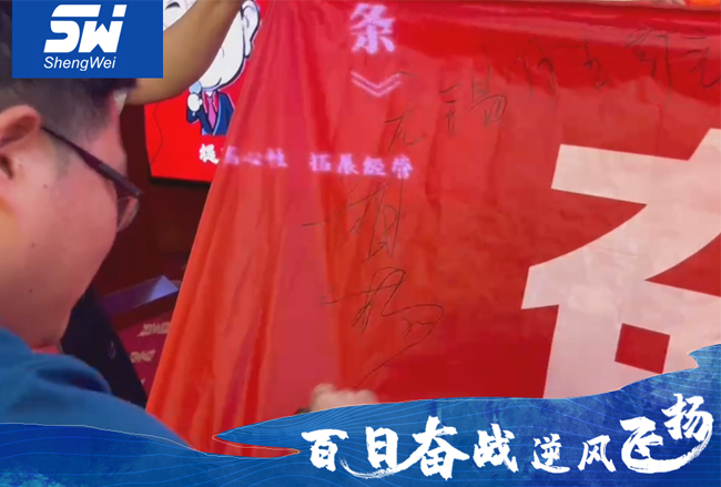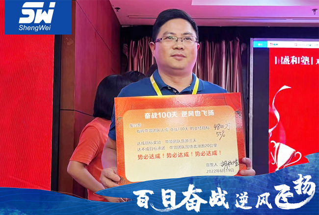 董事長胡楊生宣誓:帶領(lǐng)團隊達成【奮戰(zhàn)100天】的業(yè)績目標:4800萬