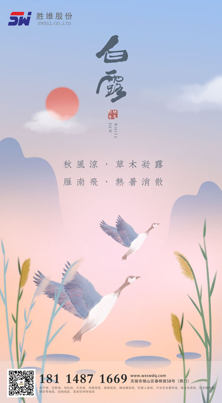 秋空雁度青天遠(yuǎn),疏樹蟬嘶白露寒。晝夜溫差較大,夜間會(huì)感到一絲絲的涼意,明顯地感覺到?jīng)鏊那锾斓絹怼?quot;白露"代表著暑熱的結(jié)束,萬物隨寒氣增長(zhǎng),逐漸蕭落、成熟。